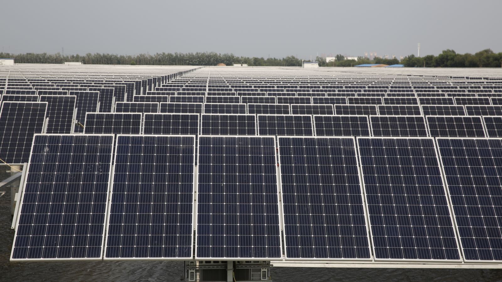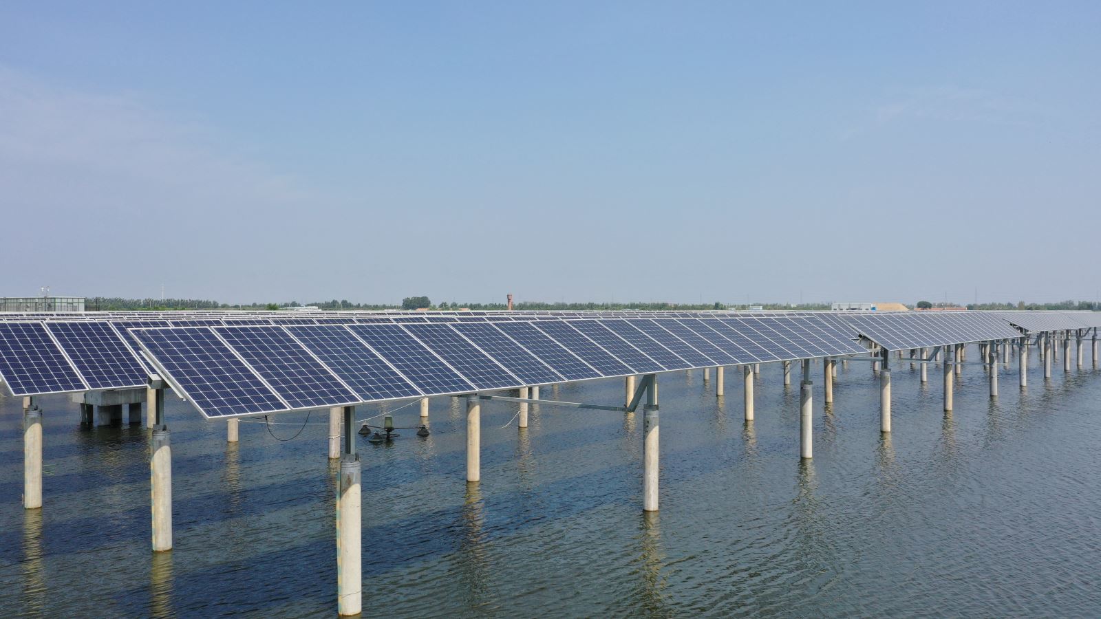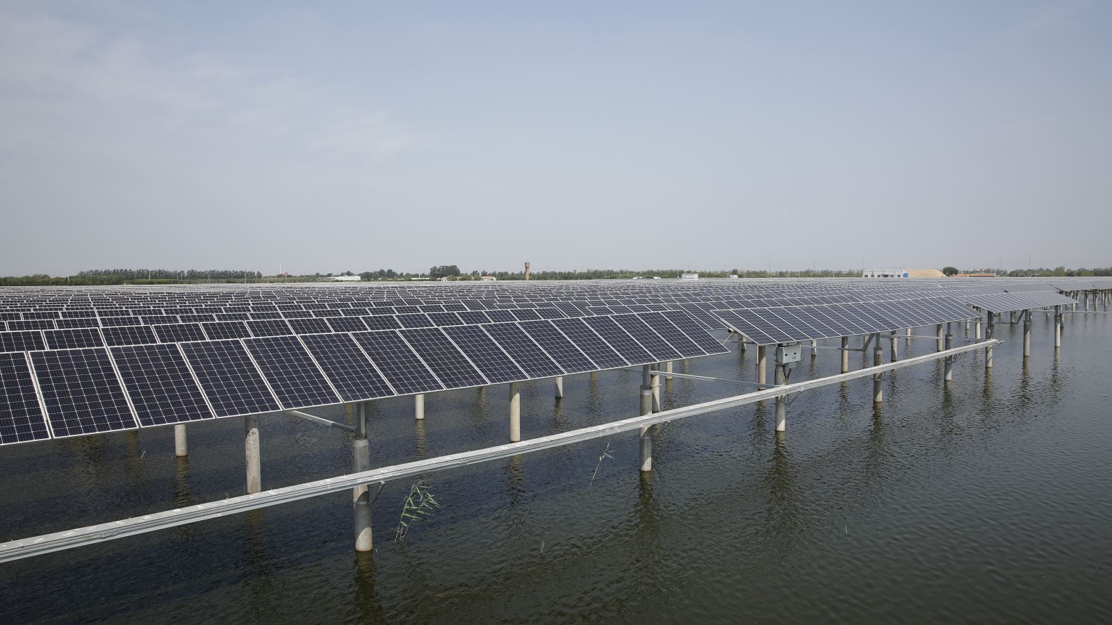 The 133MWp fishery photovoltaic complementary power generation project at Mengjiafangzi Village, in Tuanbo Town, Jinghai, adopts the combination of aquaculture and photovoltaic power generation. A photovoltaic panel array is seted up above the water surface of the fishpond, fish and shrimp cultivation can be carried out in the water below the photovoltaic panel, which formed the power generation mode of "power generation on the top and fish cultivation on the bottom". Project is located in the east of Tuantang line , south of Shanshen line, covering an area of 4076 mu and building a new 110kV booster station with133 MWP of installing capacity , 19057 groups of single axle trackers , efficient 365028 pieces of single crystal modules, 114 set of string type inverters, 27 tables of distributing type inverters, and 37 units of box-type transformers. The grid way adopts full access to the Internet and it has been completed the full capacity of the grid work on June 30th, 2018.
