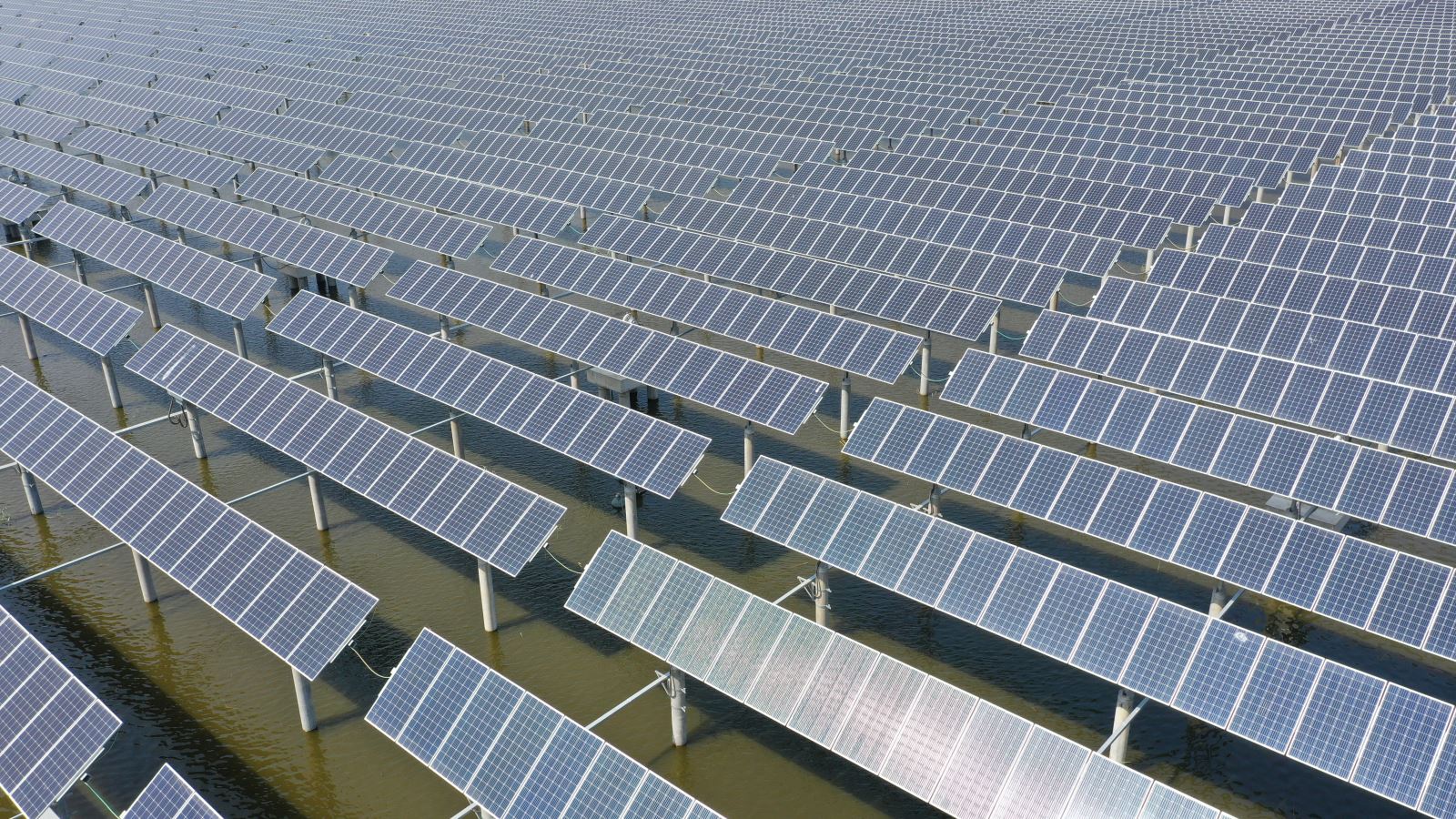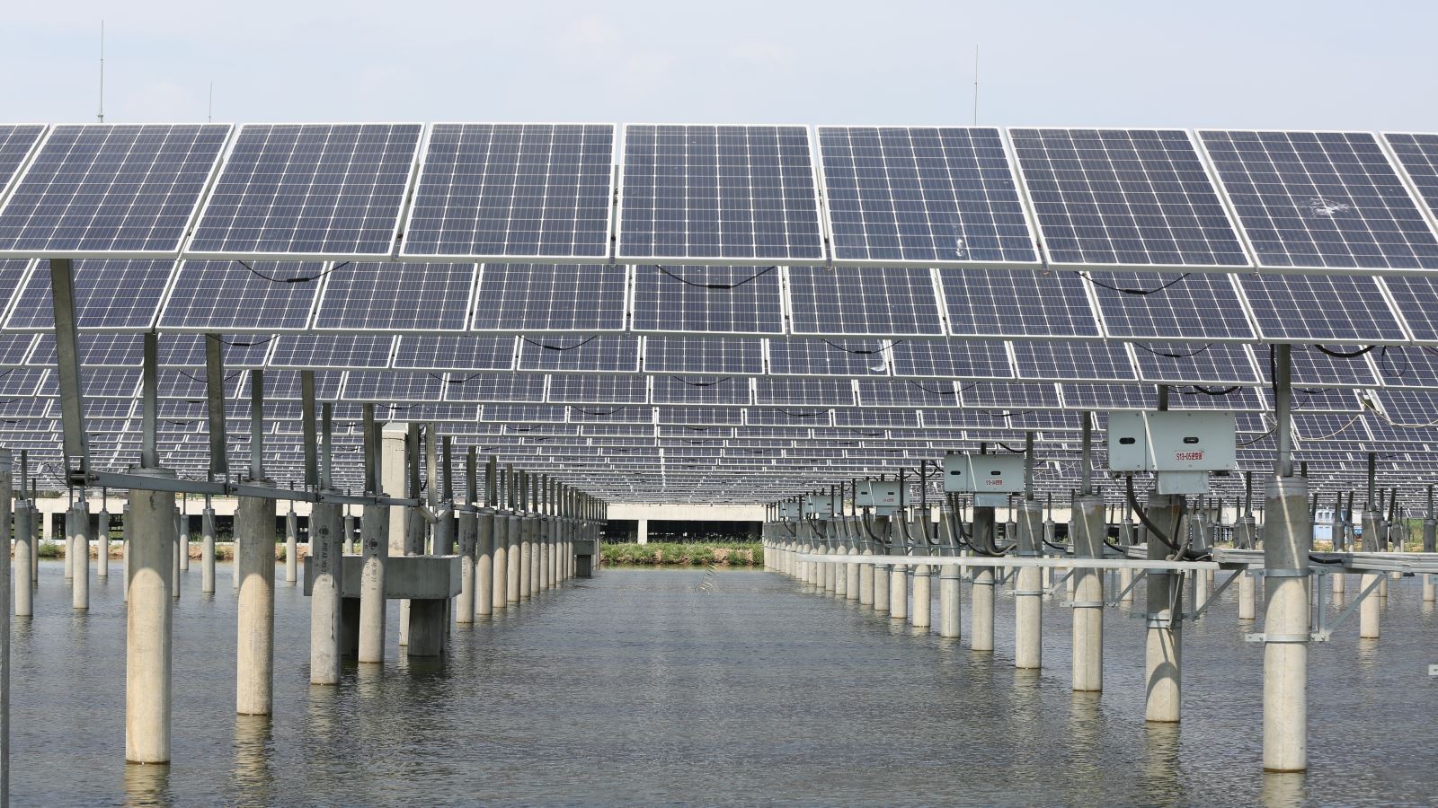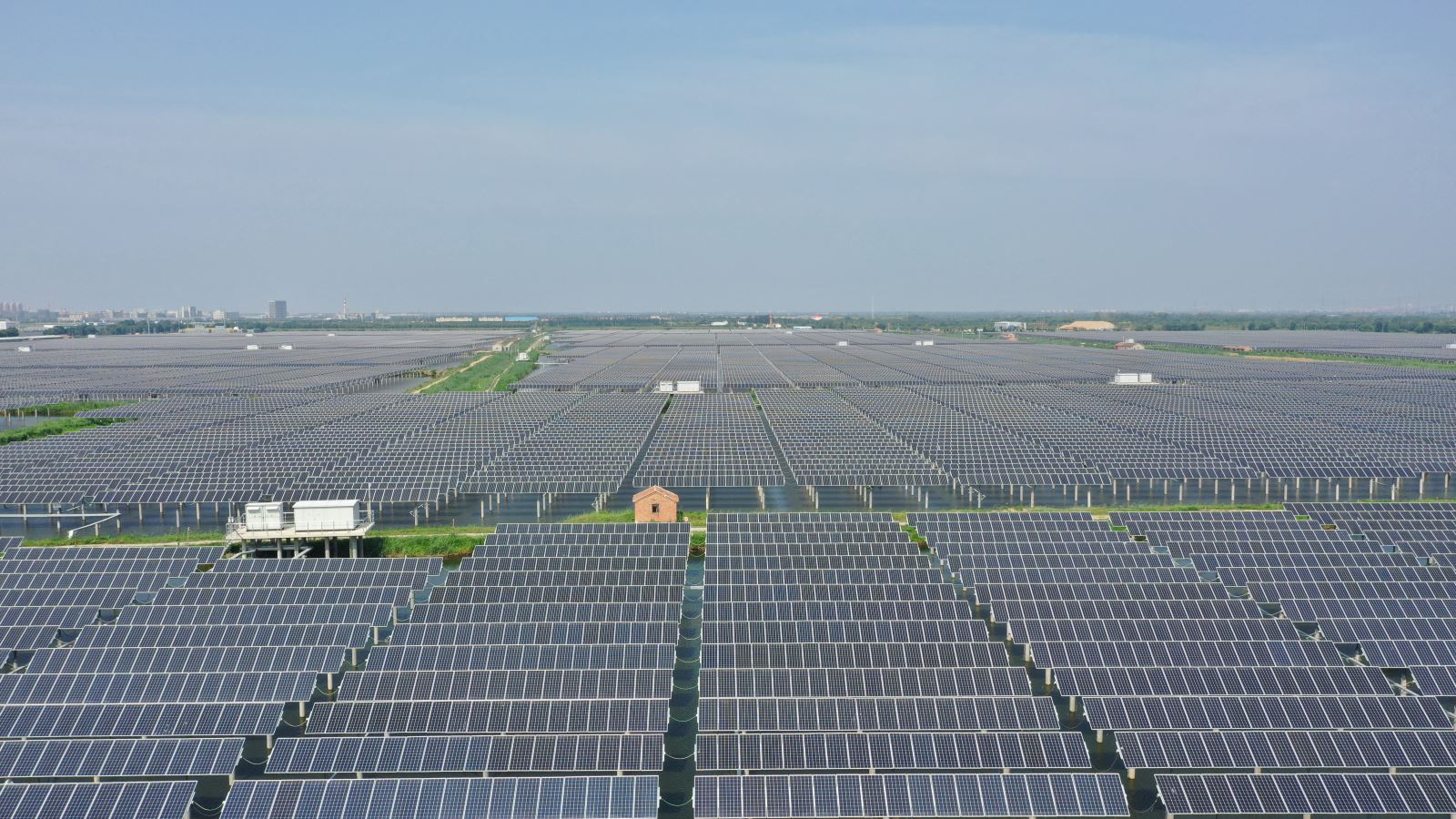 The 133MWp fishery photovoltaic complementary power generation project at Mengjiafangzi Village, in Tuanbo Town, Jinghai, adopts the combination of aquaculture and photovoltaic power generation. A photovoltaic panel array is seted up above the water surface of the fishpond, fish and shrimp cultivation can be carried out in the water below the photovoltaic panel, which formed the power generation mode of "power generation on the top and fish cultivation on the bottom". Project is located in the east of Tuantang line , south of Shanshen line, covering an area of 4076 mu and building a new 110kV booster station with133 MWP of installing capacity , 19057 groups of single axle trackers , efficient 365028 pieces of single crystal modules, 114 set of string type inverters, 27 tables of distributing type inverters, and 37 units of box-type transformers. The grid way adopts full access to the Internet and it has been completed the full capacity of the grid work on June 30th, 2018.