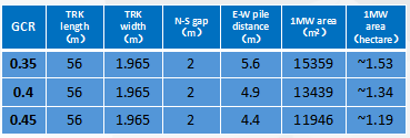 Area of 1MW under different GCR(Excluding road and MVT)