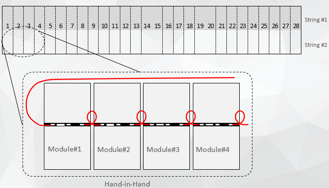 String way:Hand-in-Hand module connection way,using a long “Pull-Back” cable in the end